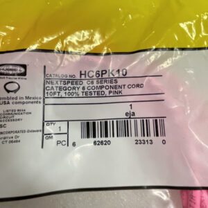 Hubbell 10ft HC6PK10 Cat6A Pink Network Cable Patch Cord Nextspeed Ascent 6A
