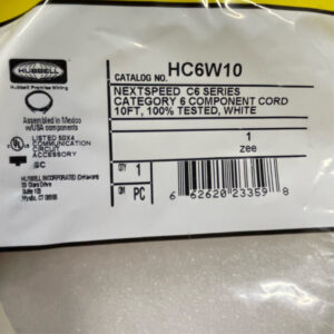 Hubbell 10ft HC6W10 Cat6A White Network Cable Patch Cord Nextspeed Ascent 6A