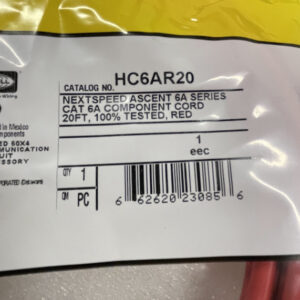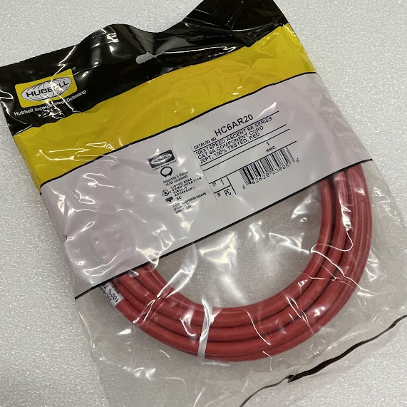 Hubbell 20ft HC6AR20 Cat6A Red Network Cable Patch Cord Nextspeed Ascent 6A