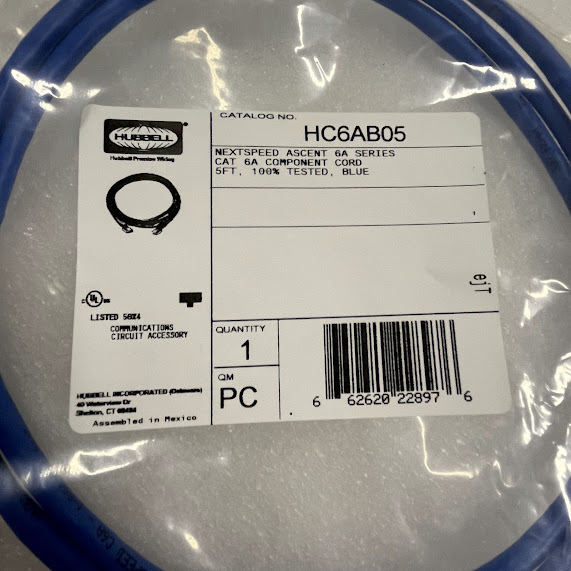 Hubbell HC6AB05 Cat6 NextSpeed Blue 5ft Network Cable 6A Ascent Cat 6 LAN